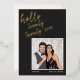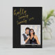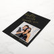 This bold New Year card pairs a sleek black background with shining gold foil lettering for a fun, modern greeting. The bright photo frame keeps your picture the center of attention, while the handwritten script adds a playful celebratory feel. Clean, minimal typography along the bottom balances the layout. Easy to customize and perfect for sending stylish New Year wishes.