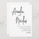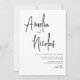 Invite guests to your event with this minimalist wedding invitation. It features a handwritten script and simple typography. Personalise by adding your own details. This handwritten wedding invitation is perfect for any wedding theme or season.