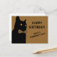 Black Happy Birthday Cat with a Brown Bow Tie Postcard