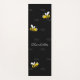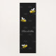 Decorated with happy, smiling yellow and black bumble bees. A chic black background. Personalise and add a name and your monogram, initials. The monogram in grey as a pattern in the background. The name is written in white with a modern hand lettered stylie script.