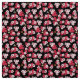 Beautiful solid colour Hibiscus flowers on a black background, with Penguins wearing Hawaiian shirts.