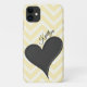 Add some fun and personal style to your phone case with this stylish design featuring a yellow chevron stripe pattern under a black heart with a raised 3D effect. Can be customised for any size or style of phone and personalisation (such as a name or initials) is easy to make your own. You can also choose to remove text and have the design only. Makes a great gift! Please check out my store here on Zazzle to see the other designs and products available. If you like what you see, be sure to follow me for new product updates. Thank you for your interest in SapphireDesigns!