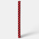 Do you like cute phone cases? This phone case has a pattern of black hearts on a red background.