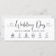 Modern black and white wedding day timeline cards feature a stylish typography design with wedding day event icons, timing information, chic calligraphy script, and heart accents. The simple and elegant custom text that can be completely personalised with the bride and groom names, wedding date. and timeline details.