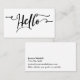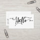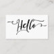 This simple, friendly card features the word "Hello" on the front. It has been rendered here in a beautiful, modern script font, with swirling embellishments, in bold black. The background was set to editable white, which you can change to any colour you prefer | Your personal details appear on the back. I've set up template fields for your name, phone number, email address, and there's one additional line for whatever else you'd like to include. Of course you can make further changes, too! Whereas just filling in the template fields will render your details in black, in a versatile serif font, left and bottom-aligned, should you wish to make even more updates, simply click the link for further customisation and you can change the font, size, its colour, the background colour, and the positions of the words. You can also use this option for placing additional text fields on the card, should you need to include more personal information. Please let me know if you need help with anything!
