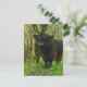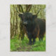 Not something you'll see every day. A free-roaming black Highland cow grazing and taking shade in the woods. Friendly and inquisitive, these rugged, horned, Scottish Highland cattle are usually used for conservation grazing.