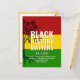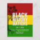 Motivational BLACK HISTORY MONTH postcard showing a half image tree silhouette against a rich red, yellow and green background, and BLACK HISTORY MATTERS in bold white typography. Underneath this is the inspirational quote by MARCUS GARVEY. On the reverse there is a CUSTOMIZABLE greeting which you can personalise with your own wording. A great way to keep in touch over the Black History Month season. Other varieties of BHM cards, invitations, clothing and decor are available.