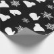 Black Holiday Mittens and Christmas Hats and Snowflakes Wrapping Paper