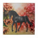 Black Horse Fantasy Flowers Animal Tile