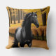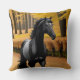 Black Horse in a Scenic Autumn Forest Path Cushion