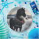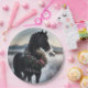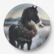 Black horse in the snow with Christmas wreath Paper Plate