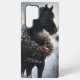 Black horse in the snow with Christmas wreath Samsung Galaxy S22 Ultra Case
