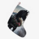 Black horse in the snow with Christmas wreath Small Christmas Stocking