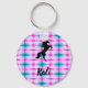 Black Horse Rearing Personalised Keychains - Pink and Aqua Blue abstract design for the background. Beautiful black horse rearing up above the personalised name of your choosing!