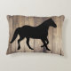 Black Horse Silhouette & Rustic Wood Planks Decorative Cushion