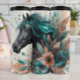 Black Horse with Teal Mane Flowers Thermal Tumbler