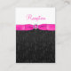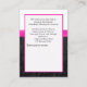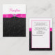 This black and white floral Reception Enclosure card with PRINTED hot pink ribbon and PRINTED jewel brooch will add a little pizzaz to your pink and black themed wedding. Some of the papers may alter the colour of the design, so use caution when you choose any of the paper types. ALSO, if you re-size the card, or if you change fonts, or the size of the font, some of the design and/or text may get cut-off. Everything will print as you see it on your monitor. I will not see your card, and Zazzle will NOT correct anything (typos, mis-alignment etc.). The text and paper is all customisable. If you need help with this card, please email me BEFORE you place your order. If you require any other matching items, please email your request to niteowlstudio@gmail.com