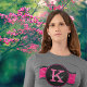 Black Hot Pink Grey Waves Girly Glam Monogram Name T-Shirt