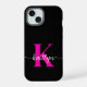 This simple, elegant black iPhone 15 Case with your first name in a trendy script font in white and your first initial in a modern cap font in hot pink would look fabulous on your cell phone and will keep it protected from breakage. It's stylish and trendy and yet very classic.
