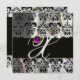 BLACK ICE SILK DAMASK MONOGRAM PURPLE AMETHYST INVITATION