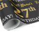 This wrapping paper design features a message like "First-Name’s 27th BIRTHDAY!", with the "27th" having a faux/imitation gold-like colour appearance. The name can be customised, and the background is coloured black. It could perhaps be used when wrapping gifts being given for somebody’s twenty seventh birthday. [~Z0000177]