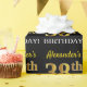 This wrapping paper design features a message like "Alexander’s 38th BIRTHDAY!", with the "38th" having a faux/imitation gold-like colour appearance. The name can be personalised, and the background is coloured black. It could perhaps be used when wrapping gifts being given for somebody’s thirty eighth birthday. [~Z0000177]