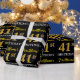 This wrapping paper design features a message like "FirstName’s 41st BIRTHDAY!", with the "41st" having a faux/imitation gold-like colour appearance. The name can be customised, and the background is coloured black. It could perhaps be used when wrapping gifts being given for somebody’s forty first birthday. [~Z0000177]