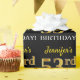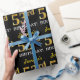 This wrapping paper design features a message like "Jennifer’s 53rd BIRTHDAY!", with the "53rd" having a faux/imitation gold-like colour appearance. The name can be personalised, and the background is coloured black. It could perhaps be used when wrapping gifts being given for somebody’s fifty third birthday. [~Z0000177]