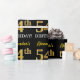 This wrapping paper design features a message like "Alexander’s 54th BIRTHDAY!", with the "54th" having a faux/imitation gold-like colour appearance. The name can be customised, and the background is coloured black. It could perhaps be used when wrapping gifts being given for somebody’s fifty fourth birthday. [~Z0000177]
