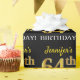 This wrapping paper design features a message like "Jennifer’s 64th BIRTHDAY!", with the "64th" having a faux/imitation gold-like colour appearance. The name can be personalised, and the background is coloured black. It could perhaps be used when wrapping gifts being given for somebody’s sixty fourth birthday. [~Z0000177]