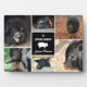 Pet pig memorial plaque printed with a photo collage of six photos featuring your beloved pet pig. Add their name too in a modern white script against a black background and beneath In loving memory and the white silhouette of a happy pig standing on all four hooves. Honour the pet pig you've lost with this pet pig photo collage plaque personalised with photos and your pet pig's name.