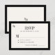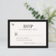 Timeless modern retro vintage elegant luxury old money black and ivory wedding RSVP card with stylish formal typography and bride and groom's monogram initials.