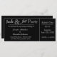 Black invitation is designed for Jack and Jill wedding shower parties. The left side of the invitation has a spot for the bride and grooms names and the event location. Customise with your own wording and information. The right side of the invitation is sectioned off with a dotted line to cut off and use as a ticket stub for paid admission to the party. Customise with your own price, date and times. This is a perfect invitation to use as a ticket to paid Jack and Jill wedding shower parties!