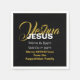 Black JESUS REASON SEASON Christmas Paper Napkins. Based on the popular inspirational Christian saying - Jesus is the Reason for the season - this design says JESUS, Without the Reason there'd be no season. Yeshua is written in script against the black background. The Scripture verse is John 1:14 - The Word became flesh. All text is CUSTOMIZABLE, so you can personalise with your own favourite text. Comes in other colours and matching party supplies.