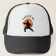 Black Karate Figure Sun Orange Yellow Name Modern Trucker Hat