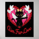 Black Kawaii Cat Cupid With Heart And Rose Aim Fur Poster