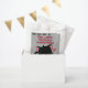 Black kawaii funny kitten for Valentine's Day celebration. This design is Purrfect for anyone but, because of the colours and the typography used, will be great for a boy to give or received in school or at a valentines party at home with friends. Is a cute kawaii cat holding a heart shaped box with a bow. Red hearts adorned this design with a grayish background with tiny white speckles. The title reads "Happy Valentines hope your day is absolutely PURRfect !