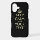 Black Keep calm iPhone X 10 case | Elegant Faux gold letters. Create your own funny Keep calm and carry on parody, background colour and text. Click here for more personalizable Keep calm gifts. Stylish gift idea for men, women and kids. Vintage typography with British crown.