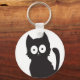 Black Kitten Silhouette on White Background Key Ring