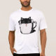 Sweet little cat is sitting in a coffee cup decorated with pink nose