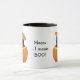 This is a cute Halloween mug! It features a fuzzy black kitten popping up out of an orange pumpkin. The same image is printed on both sides of the mug, and the customisable text in the middle says "Meow...I mean BOO!"