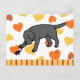 Whimsy and funny Labrador Retriever Dog Cartoon created by Naomi Ochiai from Japan. Great fun gifts for dog lovers who love Black Labradors! Nice gifts for yourself, too. :) A cute and friendly Black Labrador dog wants to say hello to his little pal. Warm yellow and orange hearts pattern.