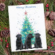 Send Christmas greetings with this adorable Black Labrador puppies around a christmas tree card.