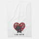 Black Lab Mum Floral Heart Kitchen Towel. An adorable Black Lab Puppy is smiling in the floral heart sticking out his/her little cute tongue. Unique and cute Labrador Retriever cartoon created by Naomi Ochiai from Japan.