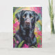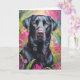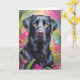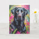 A striking modern art portrait of a black lab set against an abstract pink and green floral garden background. The dog’s dark silhouette contrasts beautifully with the vibrant, swirling colours of the garden, blending nature and animal in an expressive, contemporary style. The abstract brushstrokes create a sense of movement and energy, making this unique piece both playful and visually captivating.