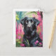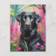 A striking modern art portrait of a black lab set against an abstract pink and green floral garden background. The dog’s dark silhouette contrasts beautifully with the vibrant, swirling colours of the garden, blending nature and animal in an expressive, contemporary style. The abstract brushstrokes create a sense of movement and energy, making this unique piece both playful and visually captivating.