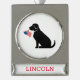 Black Lab Silhouette American Flag Pet NAME USA Silver Plated Banner Ornament