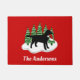 Black Labrador Christmas Evergreen Trees Christmas Doormat for dog lovers who love Labradors. Beautiful Black Labrador Silhouette design with Santa Hat. Snow and evergreen trees. Created by Naomi Ochiai.