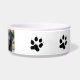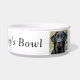 A white pet bowl with a customisable photo of a cute black Labrador, customisable text and dog paw! Just upload a photo of your dog or cat or anything you want and change the name. It will be perfect as a gift for a family welcoming a new pet!