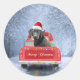 Black Labrador Dog in Snow sitting in Christmas Classic Round Sticker